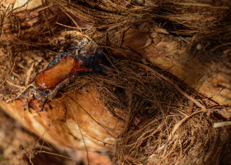 Its life cycle includes several stages: egg, larva, pupa, and adult. The female lays her eggs in wounds or crevices in the bark, and upon hatching, the larvae tunnel through the palm’s tissue, feeding on it. This feeding activity not only weakens the tree but also makes it susceptible to secondary infections by pathogens and other pests.